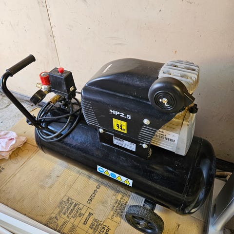 Mec-Air MA2021 ilmakompressori, jossa 200 litran säiliö ja 10 barin paine. Käyttöjännite 230 V, 50 Hz, teho 1,2 kW. Väriltään sininen ja varustettu pyörillä liikuttelua varten.