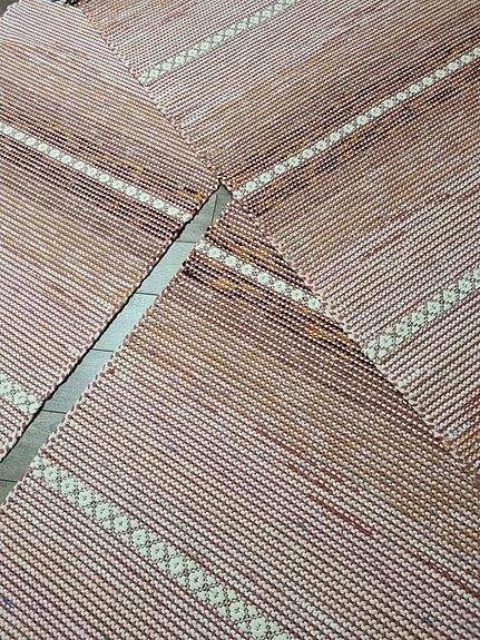 Näitä hienoja räsymattoja nyt valmiina iso sarja. Voidaan myydä myös "osissa" Erittäin napakat, suorareunaiset matot. Värit luonnossa kauniimmat, kuin mitä kuva antaa olettaa. tässä isoon tupaan hieno kokonaisuus.