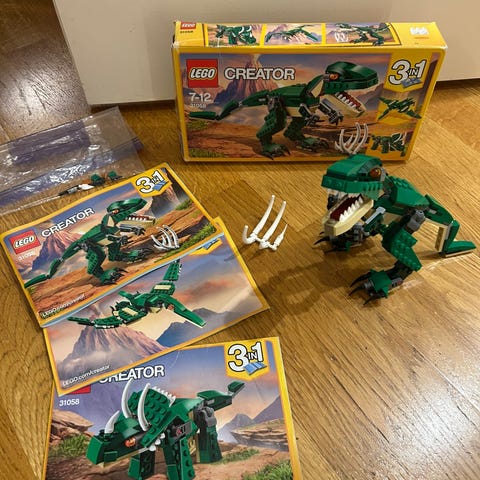 LEGO Creator Dinosaurukset setti. Kaikki osat ja kaksi ohjekirjaa. Osat tarkastettu. Alkuperäis pakkaus ei ole mukana. Postitus 6 eur. Maksu ennakkoon Mobilepay tai tilille. Nouto Jyväskylästä onnistuu myös.