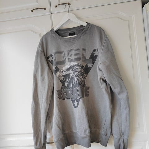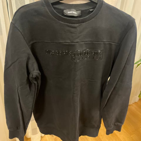 Diesel musta miesten college koko S. Paita on valmistettu 85% puuvillaa ja 15 % plyesteriä. Edessä näkyy Diesel-logo tähtikuvion sisällä. Voin heittää puseron Turun keskustaan
