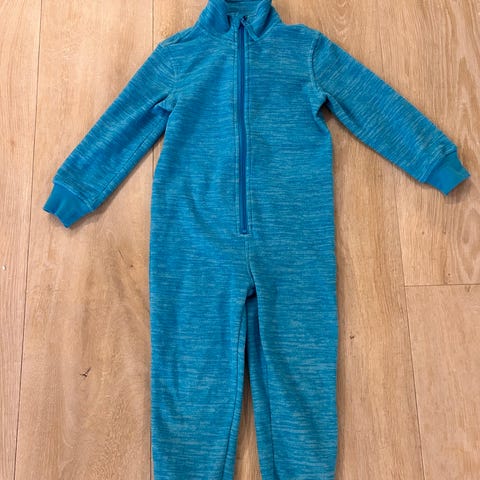 Vaaleansininen/turkoosi fleecepuku kokoa 104. Täydellinen lisävaruste välikausi- tai talvipuvun alle lämmittämään menoa! Hyvä kunto, ei kulumia takapuolessa tai polvissa.