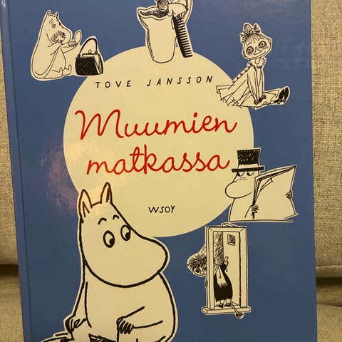 Tove Jansson Muumien Matkassa on lastenkirja, jossa on värilliset kuvitukset ja suomenkielinen teksti.