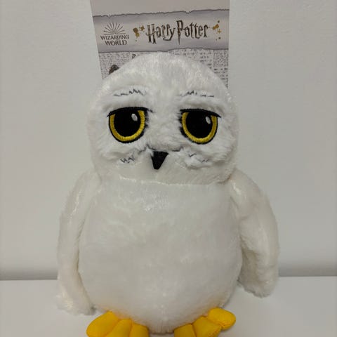 Myydään siistikuntoinen, vähän leikissä mukana ollut Harry Potter Hedwig pöllö. Korkeus n. 30 cm. Päätä saa liikuteltua takana olevasta osasta. Äänet eivät toimi.