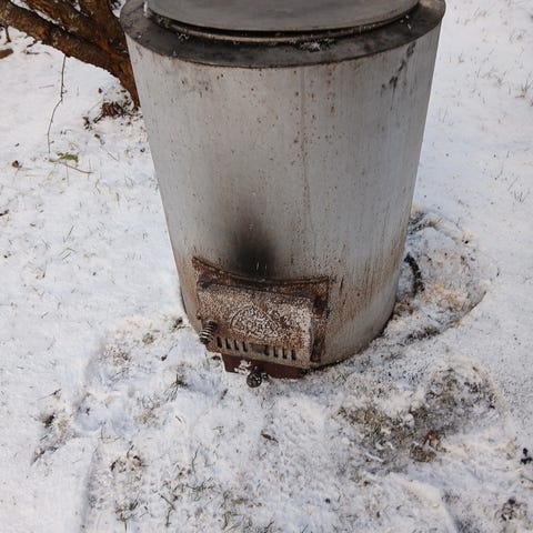 Myydään vanha teräspata puutarhaan istutuksiin tai nuotio käyttöön pohjaan porattu reikiä