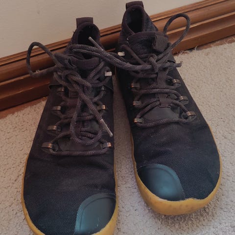 Vivobarefoot koon 38 paljasjalkalenkkarit. Kokolappu kulunut, sisämitan perusteella koon arvio. Kunto hyvä, pohjassa ei kulumaa. FG pohja. Putsausta vaativat.