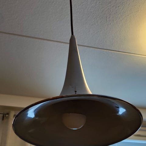 Mahdollisesti Hans-Agne Jakobssonin suunnittelema valaisin alumiinin värisenä.