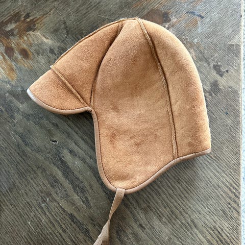 Tumman vihreää nahkaa + turkis. Korvaläpät, lauan alta kiinnitys nepparilla. Tikkivanuvuori.