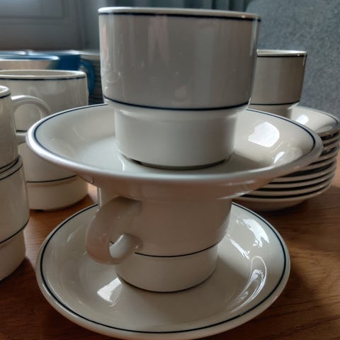 Myynnissä arabian polar kahvi-/teekuppit ja niihin kuuluvat kahvilautaset, 9kpl. Näihin mahtuu noin 1,5dl nestettä, myynnissä myös hieman tilavampi malli. Kaikki kupit ja lautaset ovat ehjiä.