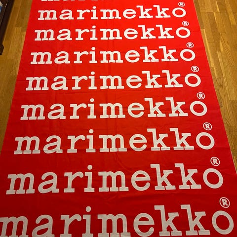 Marimekko-logokangas, punainen 147×220 cm – harvinainen keräilykangas