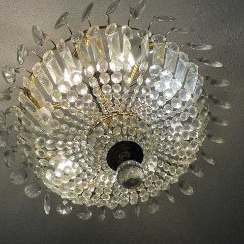 Todella näyttävä ja upea kristallikruunu kattovalaisin - oikea katseenvangitsija.