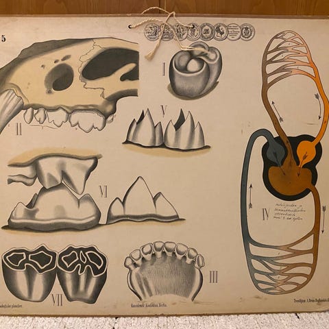 Dybdahlin eläintieteellinen koulutaulu tanskalaisen koululaitoksen opetusmateriaalista. Kuvassa on useita loiseläimiä ja selkärangattomia, esim. iilimatoja ja laakamatoja.