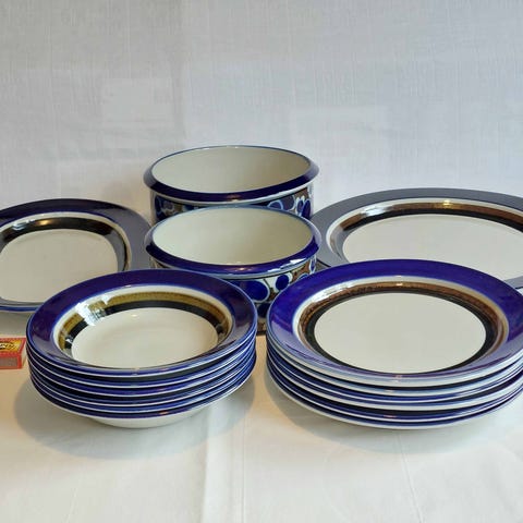 Myynnissä upea Arabia Saara -astiasto (Värtsilä). Kaunis tummansininen kuviointi ja laadukas suomalainen keramiikka.