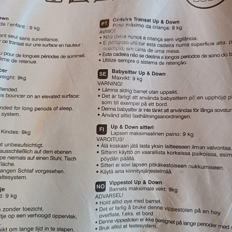 Säädettävä korkeus neljään eri tasoon, joten vauva voi olla mukana pöytätasolla tai alempana lattialla.