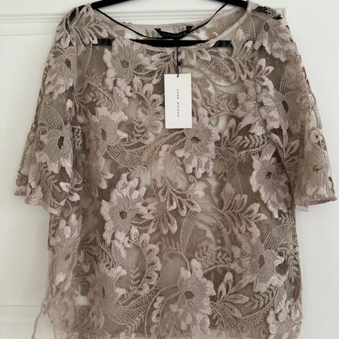 Pitkähihainen punainen pitsipaita. Leveä XL-koko, istuu hyvin myös L-XL -kokoiselle. Paita on joustavaa materiaalia ja sopii mukavasti arkeen sekä juhlaan. Kaunis pitsikoristelu yläosassa ja hihoissa tuo näyttävyyttä. Hyvin pidetty, käytetty vain vähän – ei tahroja tai kulumia.