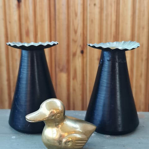 3. Matalampi musta kynttilänjalka. Korkeus 16,5cm. Siisti vintagekunto, hyvin pientä maalin lähtöä yläreunassa.