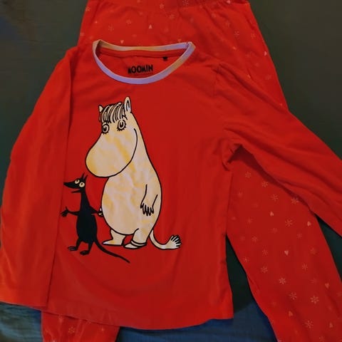 Yöpukuja setti koko 110/116. Mm. Newbie ja Muumi. Siistiä käytettyä (Huom. Jäätelökuvioiset kaupan päälle, koska shortseissa paikattava reikä). Hajusteetta pesty. Hp. yht. 7€ + mahd. postit. Sijainti Kuurinniitty, Espoo. mmm
