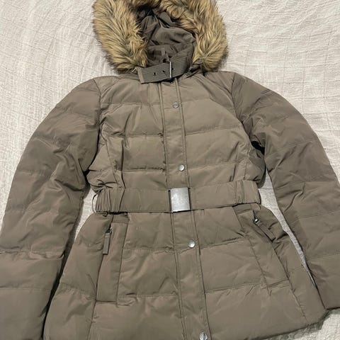 Lämmin ja muhkea untuvatakki, sopii M-kokoiselle. Kerran pesulassa pesetetty, hihansuissa jonkinverran tahraa. Savuton, hajusteeton ja eläimetön talous.