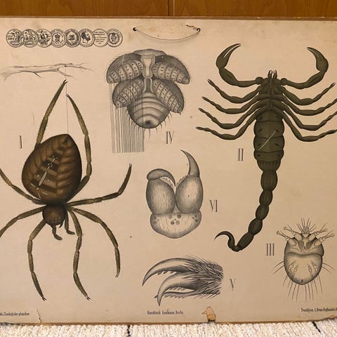 Dybdahlin eläintieteellinen koulutaulu Sudenkorento ja heinäsirkka on kooltaan 62 x 79 cm. Yläosassa vanerilista, alareunoissa hieman rikkoa. Kaiken kaikkiaan ihmeen hyväkuntoinen.