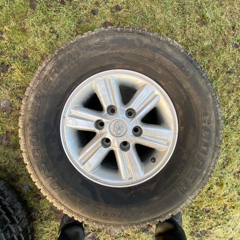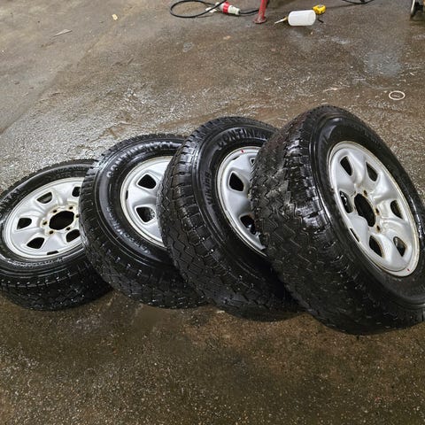 Toyota 6X5,5" Vanteet asiallisilla, mutta ikää on Nokian 5 nastarenkailla , hilux,HJ, Land Cruiser, 4wd Hiace, Vanteet nastarenkailla. Toyotan 6 pulttisiin.