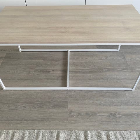 Lavasta tehty pöytä pehmusteella (vaahtomuovi) ja pyörillä. Lava hiottu ja maalattu kauttaaltaan. Neljästä pyörästä kaksi lukittuvaa.