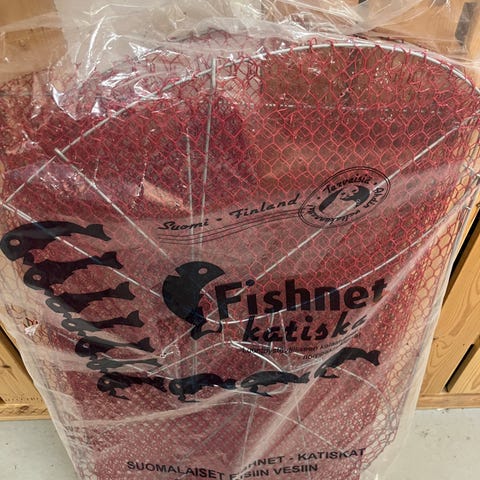 Käsityönä valmistetut tukevat, pitkäikäiset ja hyvin pyytävät katiskat. Materiaali muovipinnoitettu sinkitty teräsverkko, silmäkoko 19x19 mm. Hinta 55€/ kpl ja kaksi kappaletta hintaan 100€.