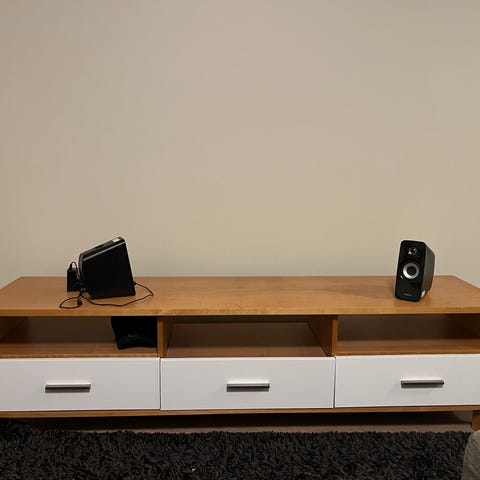 TV-taso, mustanruskea/kallviken tummanharmaa väri. Huonekalussa on kaksi tilavaa laatikkoa ja avoin hyllytila. Materiaali kestävää ja sopii olohuoneen säilytykseen ja elektroniikan sijoittamisen