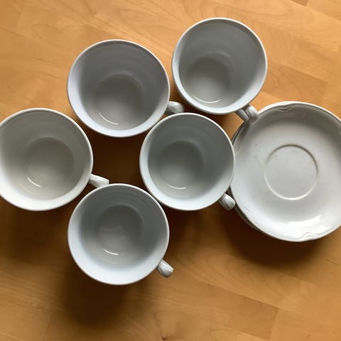 Matalia ruokalautasia 18 kpl, halkaisija 24, pienempiä matalia ruokalautasia 8 kpl, halkaisija 22 cm ja syviä ruokalautasia 7 kpl, halkaisija 24 cm.