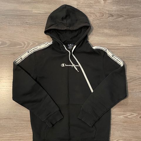 Myydään Champions-merkkinen huppari, koko S. Muuten hyvässä kunnossa, mutta hieman auringon haalistama ja hihansuut kuluneet (katso kuva).