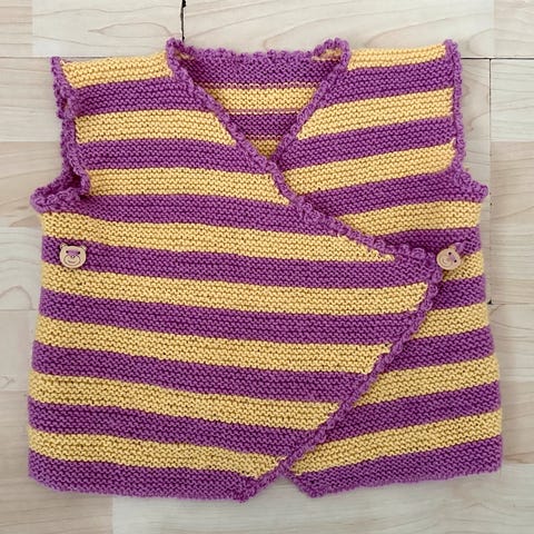 Itseneulottu harmaa villaliivi. Oli käytössä n. koossa 90-104cm öisin lisälämmikkeenä. Hyvä myös välikaudella.