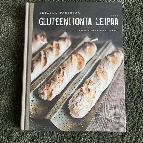 Kaksi gluteenittomaan leivontaan keskittyvää kirjaa. Ensimmäinen kirja nimeltään 'Gluteenitonta, kiitos!' sisältää erilaisia gluteenittomia reseptejä, kuten leivonnaisia ja leipiä. Toinen kirja on nimeltään 'Gluteeniton leivonta' ja se sisältää ohjeita gluteenittomien leipien valmistukseen. Kirjat tarjoavat tietoa ja reseptejä gluteenittomaan ruokavalioon soveltuvasta leivonnasta. Sisään on kirjoitettu myös oma resepti. 10,00 per kpl