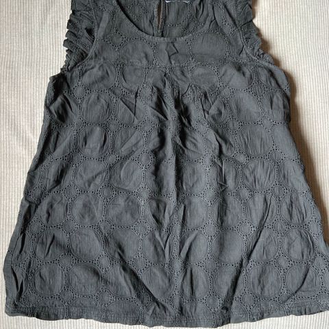 Vero Moda hihaton toppi, koko S, musta väri. Materiaali 100 % puuvillaa. Topissa on koristeellinen kullanvärinen teksti ja koristeet kaula-aukon yläpuolella. Sopii naisille. Vintage/retro