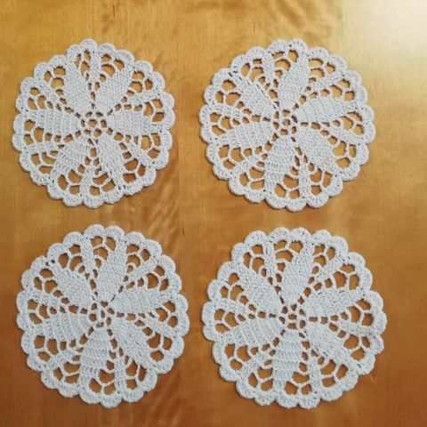 Uusia punaisia käsin virkattuja tuikkuliinoja 4 kpl
