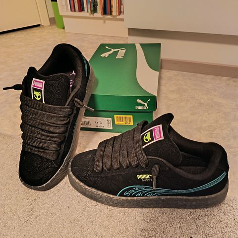 Käyttämättömät Puma Suede Classic XXI High Risk Red -tossut myyntipaketissaan. Koko 46. Kahdet nauhat.