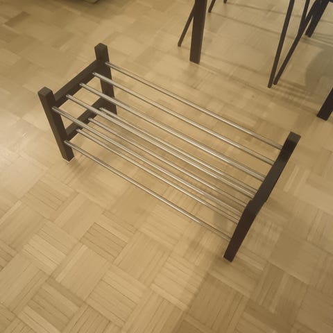 Ikean valkoinen kenkäteline. Purettu, koottava