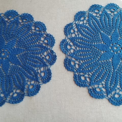 Uusia käsin virkattuja harmaita liinoja. Halkaisija n. 25 cm, valmistettu 100 % puuvillalangasta.
