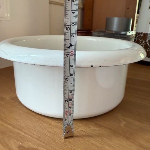 Korkeus 10 cm, halkaisija 22 cm. Valmistettu 1980-luvulla. Hyväkuntoinen, vähäisiä käytön jälkiä, sopii käytettäväksi edelleen.