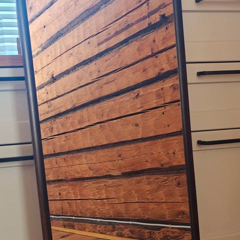 Peilin takana oleva kiinnitysnaru laitettu itse, peilin oma mennyt rikki. Peili hyvässä kunnossa. Mitat 110x50. Vain nouto.