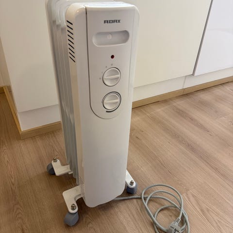 Siisti, kuin uusi (käytetty muutaman kk viime talvena). Adax Basic öljytäytteinen lämmitin, teho 1000 W, valkoinen väri, siirrettävä malli neljän pyörän avulla. Sopii 12–16 m² kokoisiin tiloihin. Laitteessa on mekaaninen termostaatti ja se on tarkoitettu lisälämmön tuottamiseen esimerkiksi talven kylmimpinä kuukausina. Helppo siirtää huoneesta toiseen.