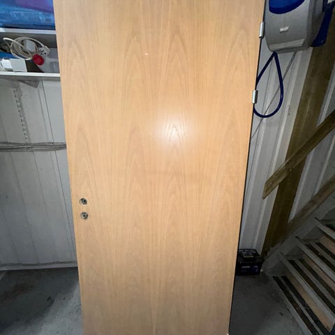 Punainen rakennusovi. sisäpuolella hieman maalin jälkeä mutta menee hyvin rakennusoveksi