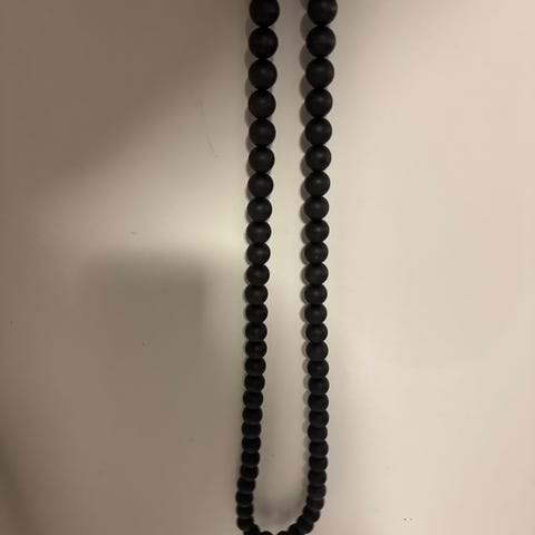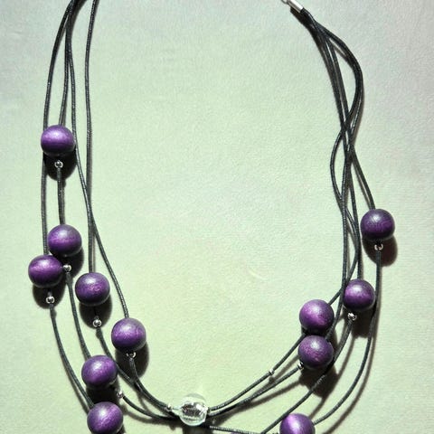 Kiva Aarikka kaulakoru jossa on vaaleat puuhelmet