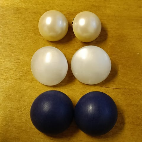 Puiset, pallon muotoiset korvakorut. Väriltään nämä ovat tumma siniset. Korvakorut ovat käyttämättömät.