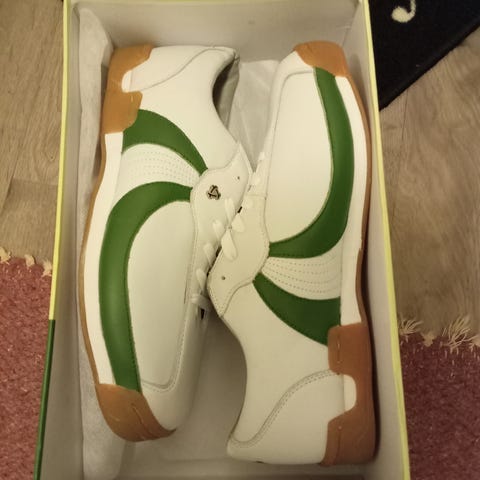 Koon 43 valkoiset tennarit, jotka ostettu joitakin vuosia sitten H&M:ltä. Ostin näitä silloin kahdet kappaleet, mutta nyt huomasin, että toiset olivat vielä kaapissa käyttämättöminä. Nämä ovat siis ihan uudet ja vielä hintalappu kiinni (uutena olivat 25 euroa).