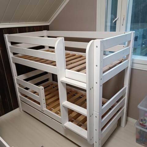 Myynnissä Ikean kerrossänky, kyseessä tämä malli https://www.ikea.com/fi/fi/p/vitval-kerrossaenky-valkoinen-vaaleanharmaa-80411272/