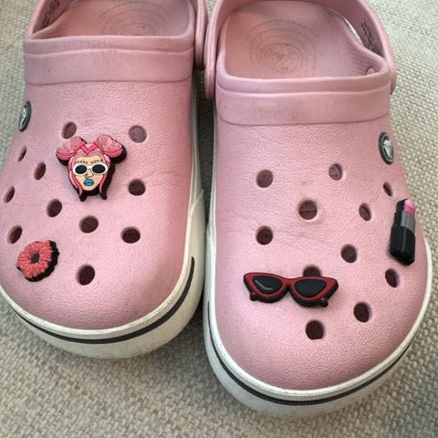 Kuvan mukaiset harmaat Crocsit, koko M6 W8, joka käsittääkseni vastaa kokoa 38-39. Siistikuntoiset, valkoiset osat jonkin verran tummuneet käytössä.