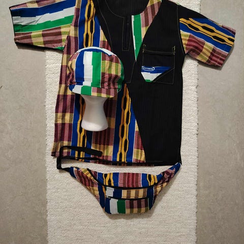 Siniharmaa, upea kangas, tunika/mekko ja housut.