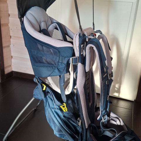 Täysin uusi, käyttämätön kantorinkka, laput kiinni. Mukaan saa myös aurinkosuojan, joka laitetaan rinkkaan suojaamaan lasta. Rinkka on täydellinen kaikin puolin, vain avattu.