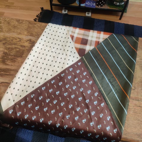 KISSANPÄÄ-satiinihuivi, kermanvaalealla taustalla kissankuvia, koko 50 x 50, silkkimäistä kiiltävää polyesteria, pesu 30 asteessa, silitys höyryllä.