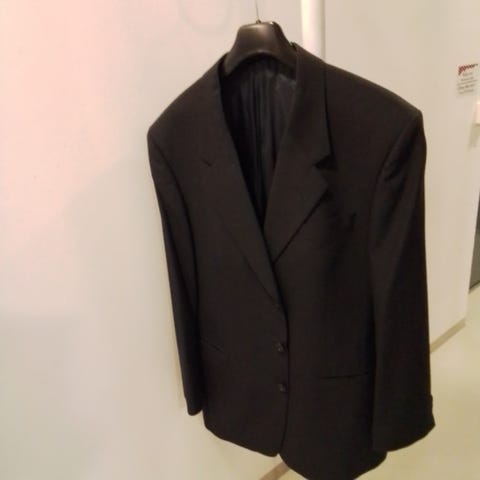 Miesten puku hyvässä kunnossa, ei vikoja, mukana housut ja solmio