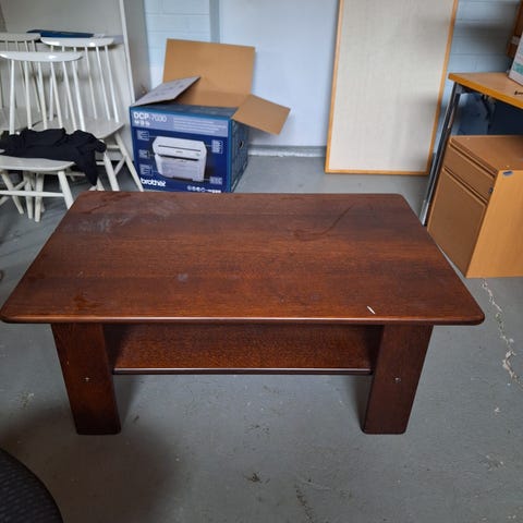 Edullinen tummaa puuta sohvapöytä muuton alta