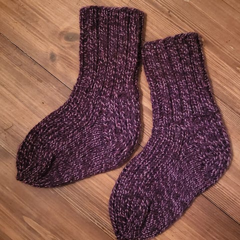 Harmaat villasukat lilan värisellä kuvio varrella.Terän pituus 18cm.
